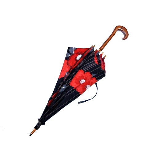 みなぎオリジナル 日本製 日傘 綿紅梅浴衣生地 手作り おしゃれ 高級感 井登美 浴衣地日傘(2.黒紅地に椿)